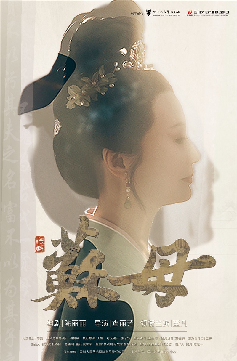 大型原创话剧《苏母》由四川人民艺术剧院有限责任公司、四川文化产业投资集团联合出品的。是全国第一部以“程夫人苏母”为主角的话剧作品。该剧由国家一级导演查丽芳执导,国家一级编剧陈丽丽编剧,著名表演艺术家、国家一级演员董凡领衔主演,集全院制作业务骨干,汇全国知名创作团队、力求让观众通过话剧舞台上苏母形象的精彩演绎,深切领略一个传奇巴蜀女性的力量。该剧通过苏母劝夫以进、教子以学、持家以富的故事,着力赓续中华文脉,聚焦中国优秀传统文化。弘扬、传承良好家风家教对新时代具有重要的积极作用。