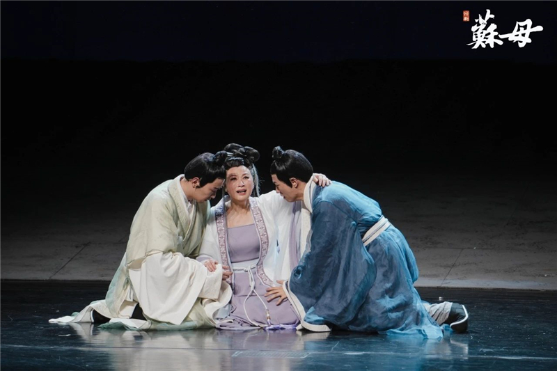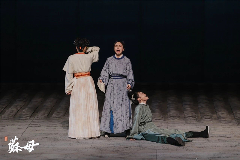 为妻苏母要接受因丈夫三考不中而遭受同乡持久的嘲笑,哥哥的规劝讽刺;为母苏母要接受失子的悲痛后站直了不趴下。她以子为友的情感交流值得称道。当她为凑足父子三人赴京赶考的盘缠而縠然卖掉多年苦心经营颇有名气的纱縠行时,导演查丽芳说她终于读懂了“一门三词客”背后的力度和温度。“话剧《苏母》的切入点中心点就一句话:程家小姐如何成为“三大贤母”的苏母的。”